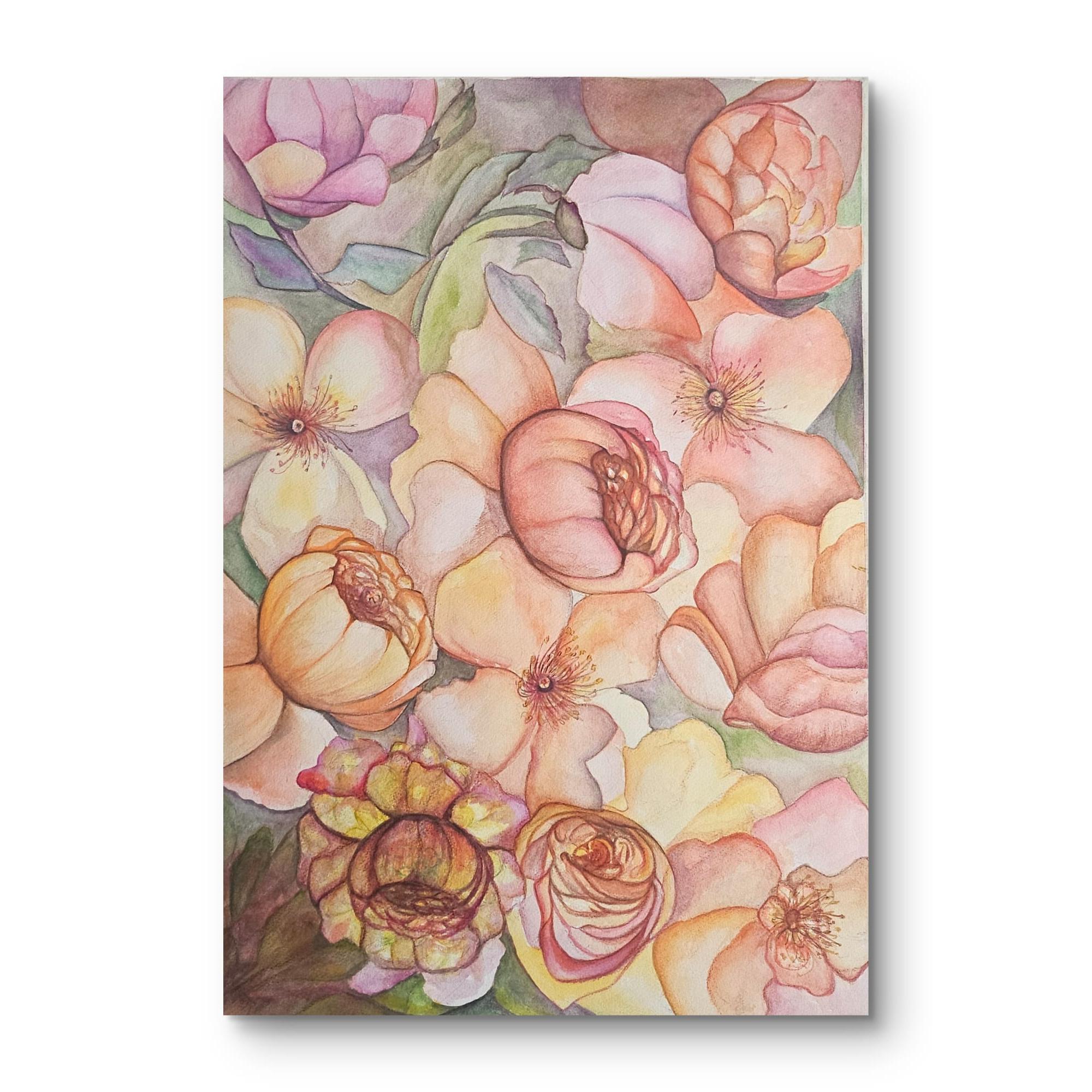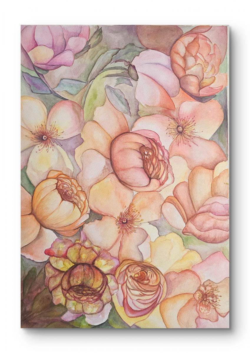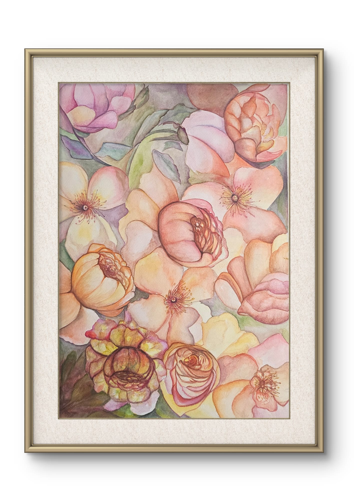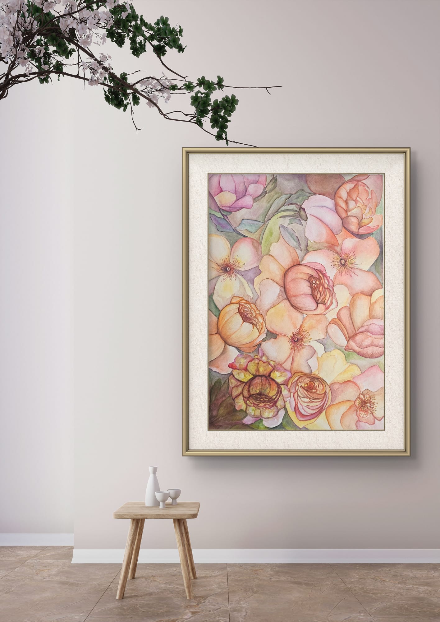 Un’esplosione di petali che si intrecciano come emozioni, Fioritura interiore racconta la rinascita silenziosa che avviene dentro di noi. I toni caldi del rosa e dell’arancio si fondono in un’armonia delicata, evocando la forza gentile della natura e la connessione profonda con le proprie radici.Un’opera che invita a respirare luce, calma e bellezza.