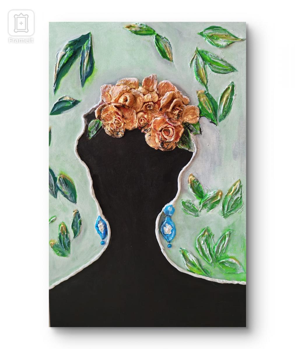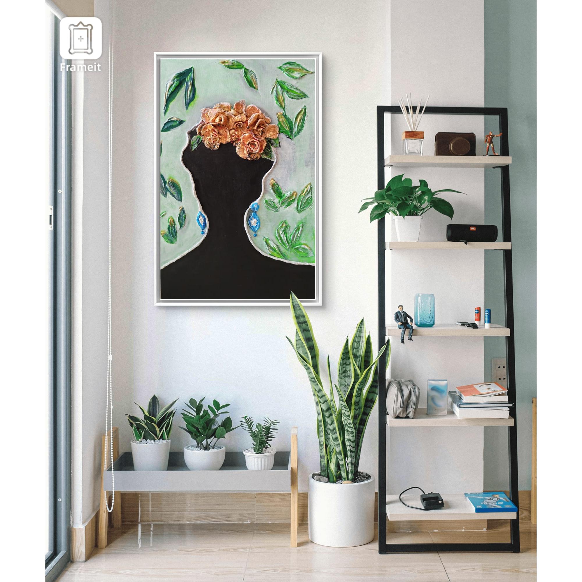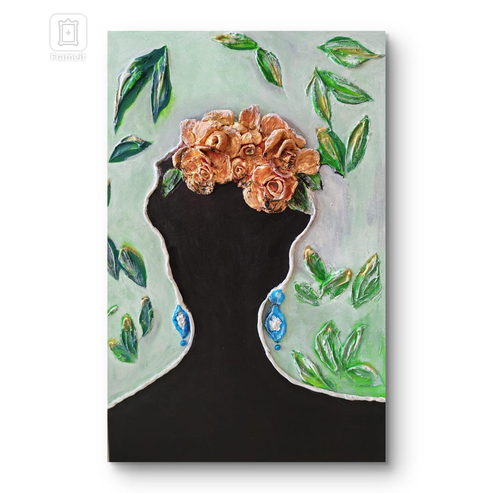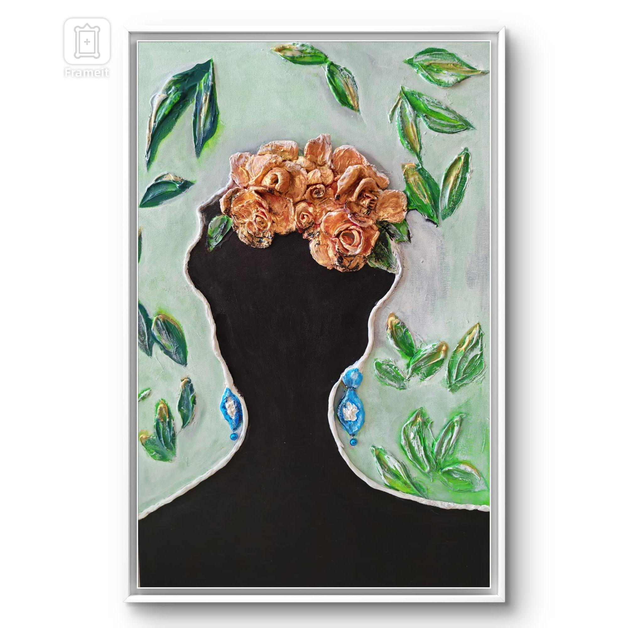 La silueta vacía se convierte en un espacio fértil: un jardín interior donde los pensamientos brotancomo rosas. La obra habla de la mente como territorio vivo, donde las ideas nacen, se abren ytransforman nuestra identidad. Una invitación a mirar hacia adentro y reconocer que tambiénsomos lo que cultivamos.